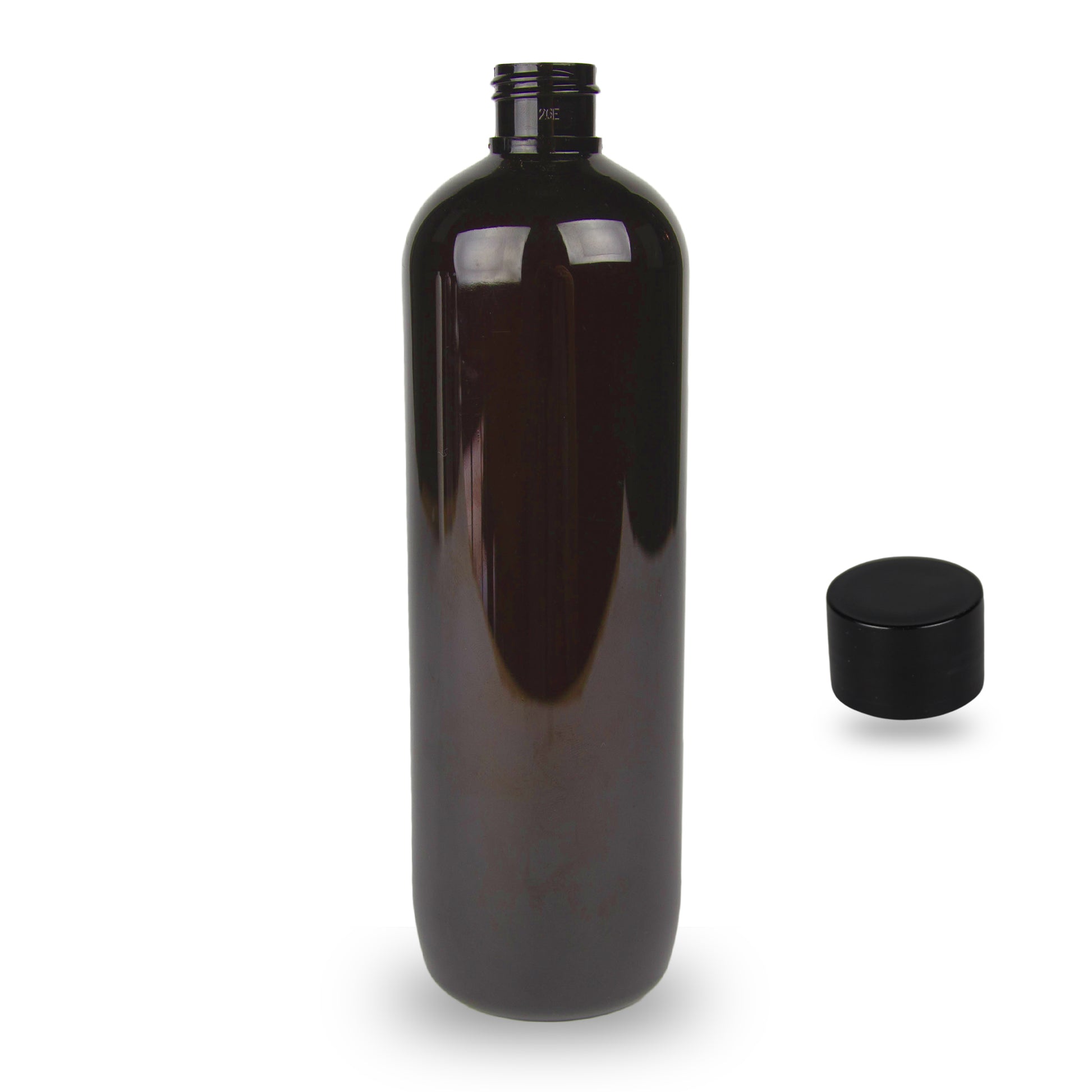 Amber Plastic Bottle PET 'Tall Boston' - (Screw Cap) - 500ml - 24mm (24/410)